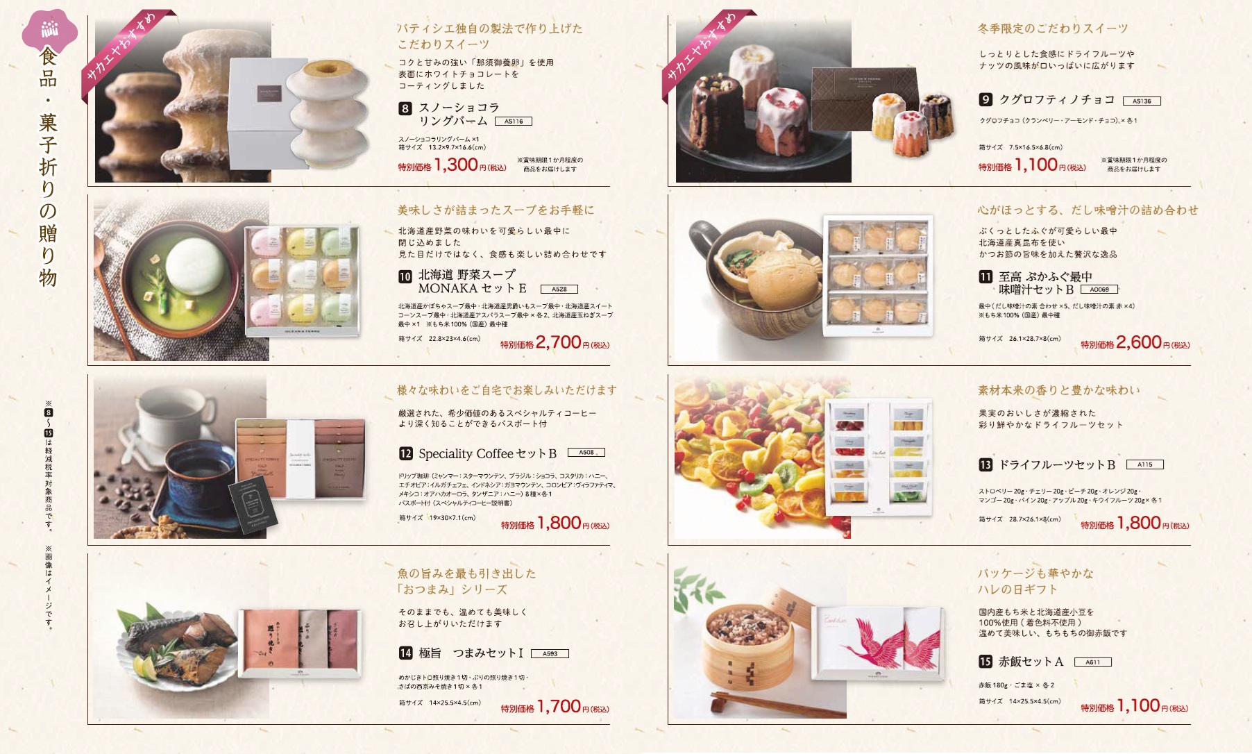 喪中お見舞いとしてお使いいただけるお品物を特別価格にてご用意しております。