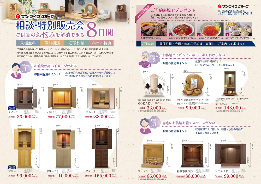 さて、この度サカエヤ仏壇店にて8日間限定の特別販売会を開催いたします。