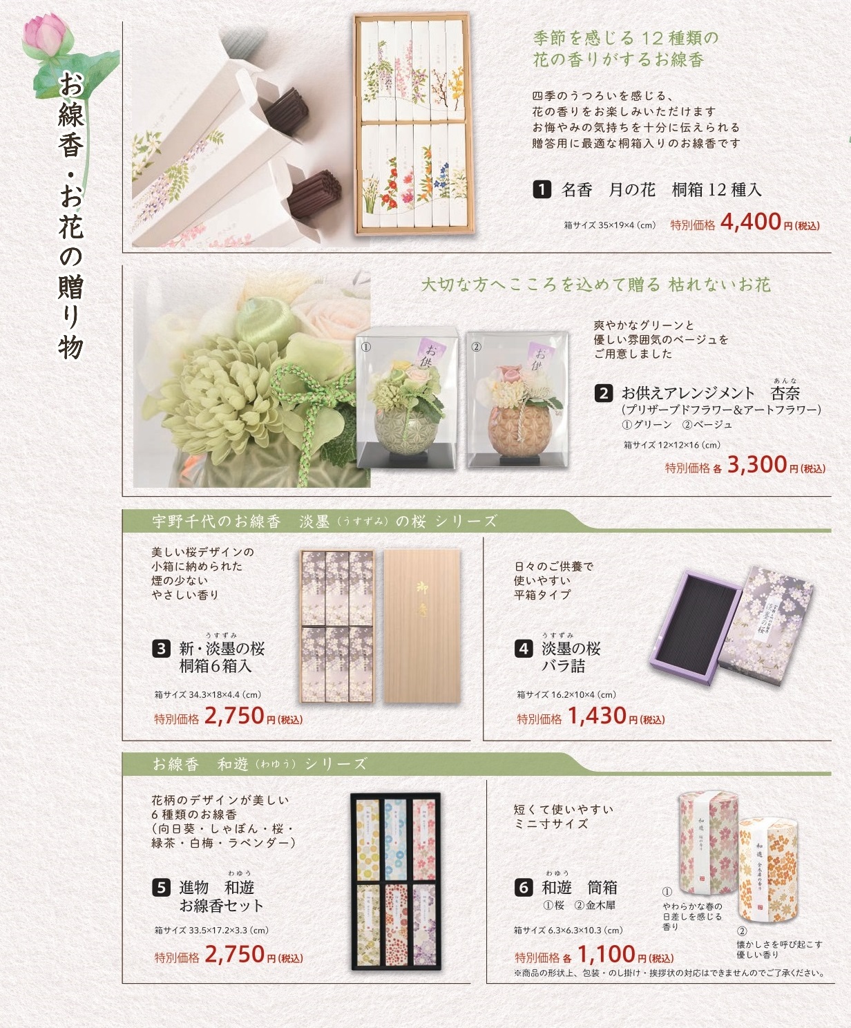 新盆お見舞いとしてお使いいただけるお品物を特別価格にてご用意しております。